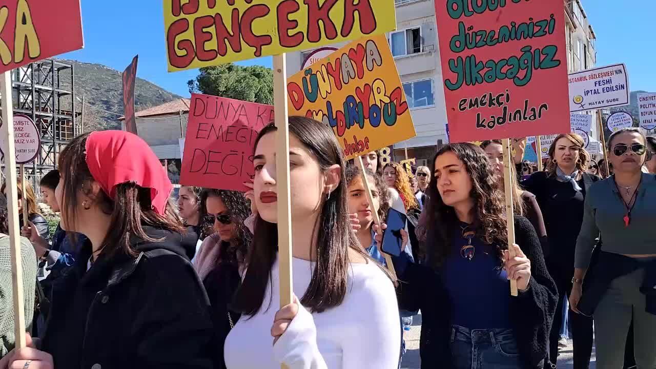 Hatay'da 8 Mart Dünya Kadınlar Günü dolayısıyla etkinlik düzenlendi. Necmi Asfuroğlu Lisesi'nden Saray Caddesi'ne yürüyen kadınlar, burada basın açıklaması yaptı.