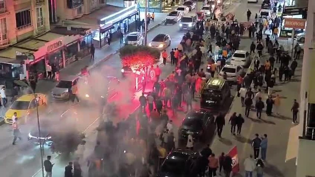 (IĞDIR) - Iğdır'da binlerce Galatasaray taraftarı, şampiyonluk yolundaki 'kritik viraj' olan Fenerbahçe maçında alınan 3-0'lık galibiyeti sokaklarda kutladı.
