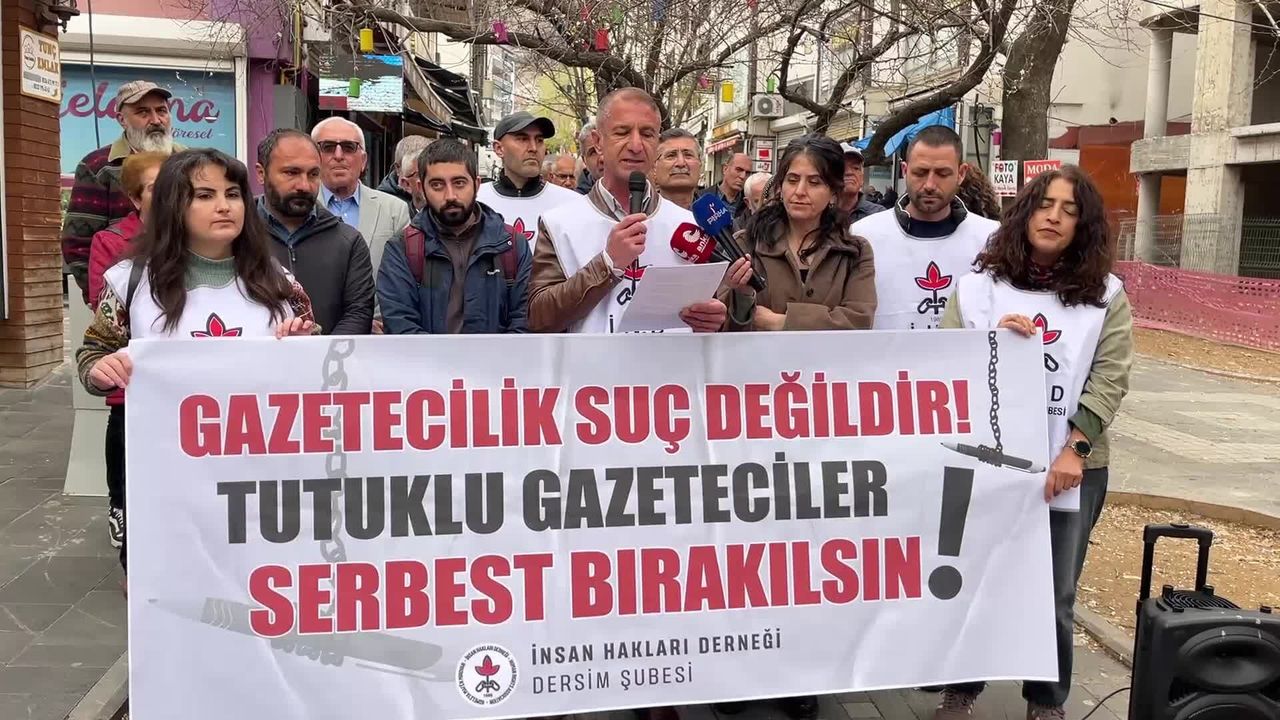 İnsan Hakları Derneği (İHD) Tunceli Şubesi üyeleri, basın özgürlüğü ve tutuklu gazetecilere ilişkin basın açıklaması düzenledi. Sanat Sokağı'nda yapılan açıklamayı Şube Eş Başkanı Özgür Ateş yaptı.