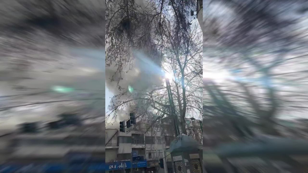 İran medyasında yer alan görüntülerde patlamalar sonrası şehir merkezinde hedef alınan noktalardan dumanlar yükseldiği görülüyor.
