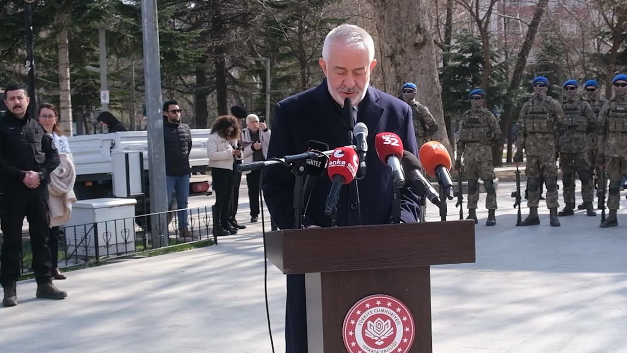 'Bugün burada Cumhuriyetimizin kurucusu, milli mücadelemizin başkomutanı, bağımsızlığımızın sembolü ve Türkiye Cumhuriyeti'nin ilk Cumhurbaşkanı Mustafa Kemal Atatürk'ün Isparta'mıza teşriflerinin 96'ncı yıl dönümünü büyük bir onur, gurur ve heyecanla kutlamak üzere bir araya gelmiş bulunmaktayız. O gün hemşehrilerimiz Ata'mızı yalnızca bir cumhurbaşkanı olarak değil, milletin kaderini değiştiren büyük bir lider olarak karşılamıştır.'