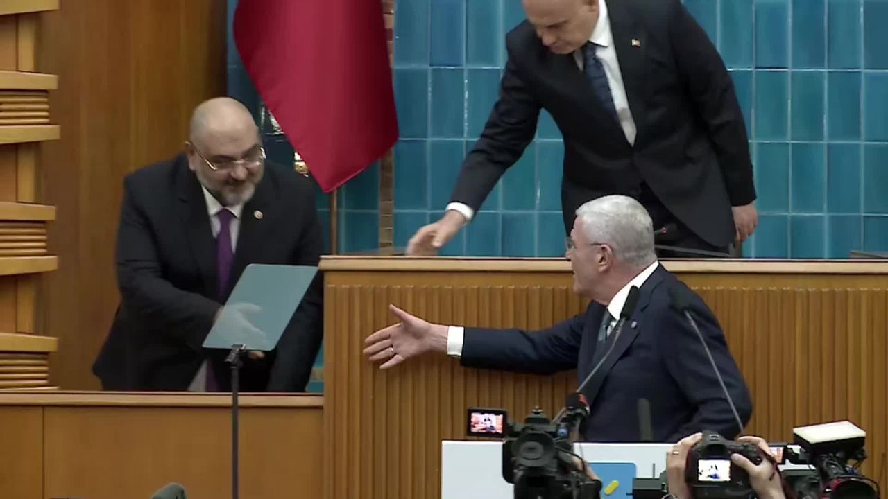 (TBMM) - İYİ Parti Genel Başkanı Müsavat Dervişoğlu, MHP Genel Başkanı Devlet Bahçeli'ye, 'Çok seviyorsan o rozeti taktıktan sonra eş başkan olarak yanına al beyefendi. 57 senelik çınar MHP'nin adını da Halkların Hareket Partisi yaparsın olur biter. Sonunda bu millet hem senden kurtulur hem de Abdullah Öcalan belasından' diye seslendi.