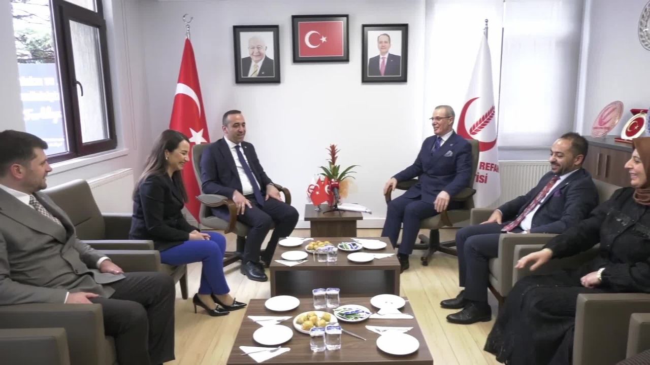 İYİ Parti heyeti, Ramazan Bayramı dolayısıyla Yeniden Refah Partisi Genel Merkezine bayramlaşma ziyaretinde bulundu. İYİ Parti AR-GE ve Parti İçi Eğitimden Sorumlu Genel Başkan Yardımcısı Volkan Yılmaz, Genel İdare Kurulu Üyesi Sevim Elif Babaoğlu ve Kocaeli Gençlik Kolları Başkanı Mustafa Mutlu Sarı'dan oluşan heyet, Yeniden Refah Partisi Genel Başkan Yardımcısı Bülent Osman Osmanağaoğlu, MKYK Üyesi Ferhat Uysal, Kadın Kolları Genel Sekreter Nilgün Ekinci ve Eskişehir İl Sorumlusu Şivekar Tütenk tarafından ağırlandı.