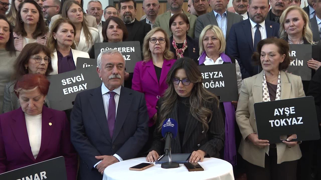 Meclis Toplantı Salonu önünde gerçekleştirilen açıklamada, grup adına açıklamayı CHP Grup Sözcüsü Yağmur Yurdakul Özkan yaptı.