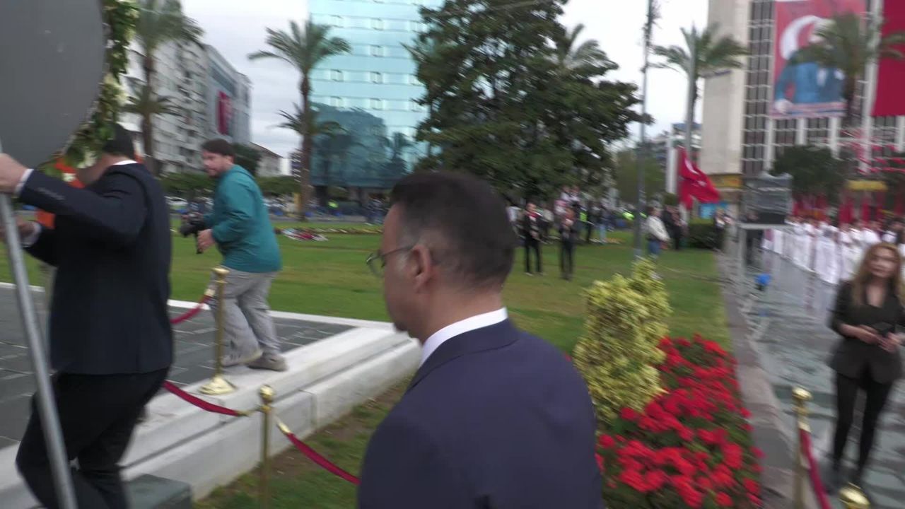 İzmir'de 23 Nisan Ulusal Egemenlik ve Çocuk Bayramı kutlamaları kapsamında Cumhuriyet Meydanı'nda tören düzenlendi. Tören, İzmir İl Milli Eğitim Müdürü Ömer Yahşi'nin Atatürk Anıtı'na çelenk sunumuyla başladı. Ardından saygı duruşunda bulunuldu, İstiklal Marşı okunarak Türk bayrağı göndere çekildi.