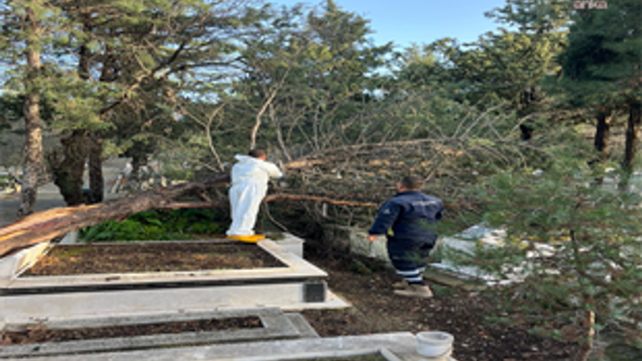 (İZMİR) - İzmir Büyükşehir Belediyesi, kentte etkili olan şiddetli yağış ve fırtınanın mezarlıklarda yol açtığı hasarı kısa sürede giderdi. Devrilen ağaçlar kaldırılırken zarar gören mezarlar onarılmaya başlandı; risk oluşturan ağaçlara müdahale edildi.