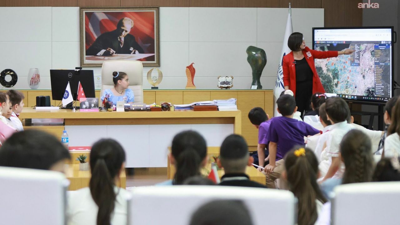 (İZMİR) - Karabağlar Belediye Başkanı Helil Kınay, 23 Nisan Ulusal Egemenlik ve Çocuk Bayramı kapsamında yaklaşık 100 öğrenciyi belediye meclisinde ağırlayarak makamını temsili olarak çocuklara devretti. Çocuklar, hayallerindeki Karabağlar'ı anlattıkları oturumda yeşil alan, güvenli çevre ve temiz kent taleplerini dile getirdi.