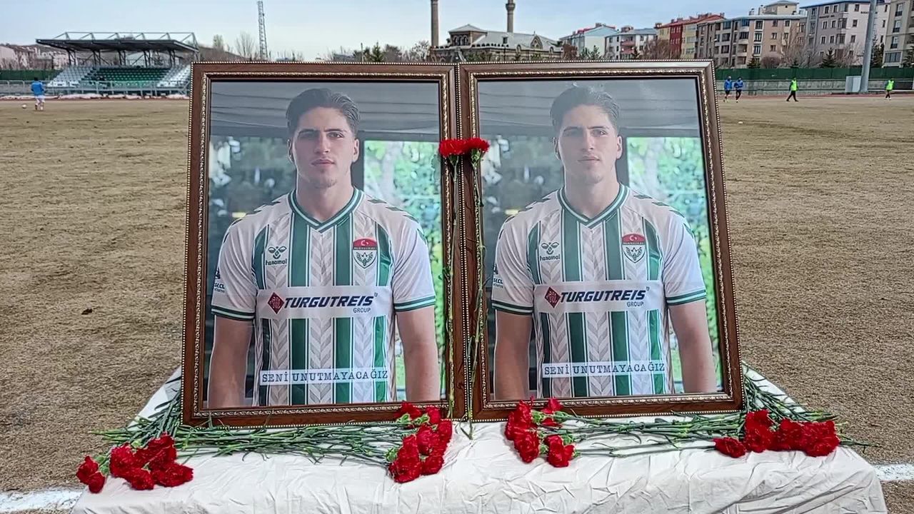 Kars 36 Spor ve Murat 2020 Gençspor'un yönetici, teknik heyet ve futbolcuları, Kundakçı'nın fotoğrafının bulunduğu masaya kırmızı karanfiller bıraktı.