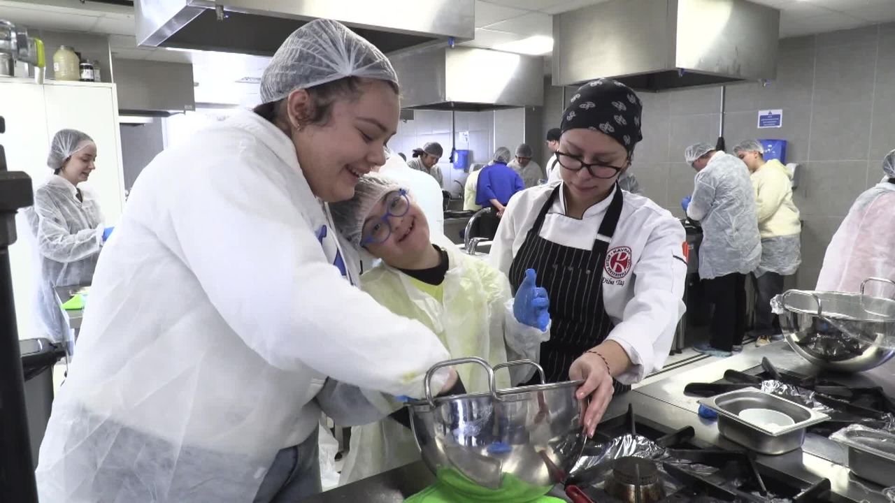 (İZMİR) - Konak Belediyesi ve İzmir Konak Meslek Yüksekokulu iş birliğiyle, 21 Mart Dünya Down Sendromu Farkındalık Günü kapsamında 'Engelsiz Mutfak: Down Sendromlu Bireylere Lezzet Atölyesi' düzenlendi. Atölyeye katılan bireyler, mutfak eğitmenleri eşliğinde kek ve kurabiye yaparak üretim sürecine dahil oldu.