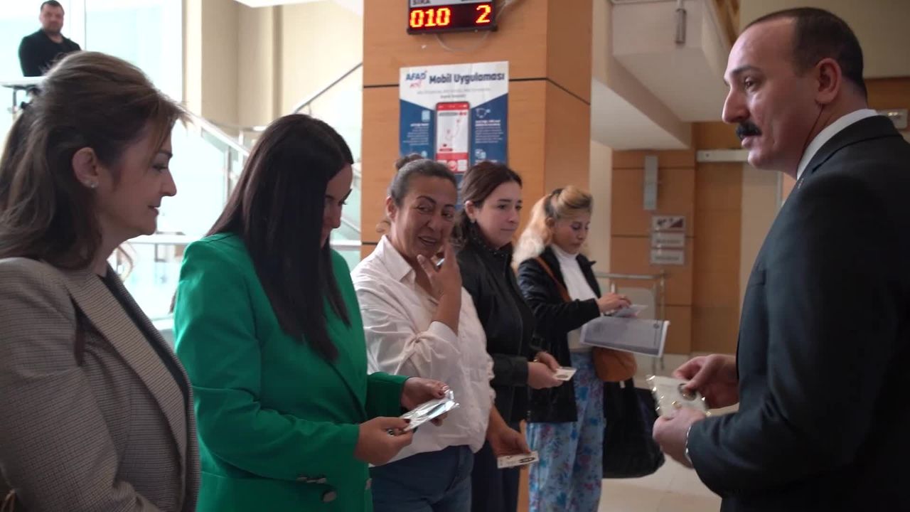 (ANTALYA) - Konyaaltı Belediye Başkanı Cem Kotan, 8 Mart Dünya Emekçi Kadınlar Günü dolayısıyla belediyede görev yapan kadın personele ay yıldızlı rozet ve üzerinde Cumhuriyet tarihinde ilkleri başaran kadınların bulunduğu kartları hediye etti.