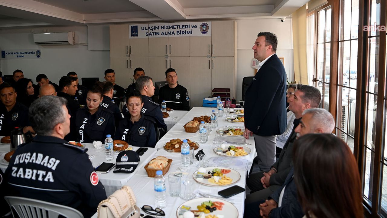 Başkan Vekili Tahsin Demirtaş, güne Kuşadası Belediyesi Zabıta Müdürlüğü'nü ziyaret ederek başladı. Zabıta personeliyle birlikte kahvaltı yapan Başkan Vekili Demirtaş'a, Kuşadası Belediye başkan yardımcıları da eşlik etti. Samimi bir atmosferde geçen buluşmada, belediye hizmetlerinin sahadaki önemi ve ekip çalışmasının değeri vurgulandı. Zabıta Müdürlüğü'nün kent genelindeki çalışmaları hakkında bilgi alan Başkan Vekili Tahsin Demirtaş, özveriyle görevlerini yapan personele teşekkür etti.