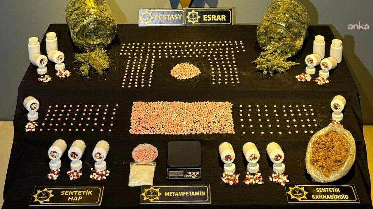 Yapılan aramalarda 1.515 gram esrar, 1.644 adet ecstasy hap, 1.453 adet sentetik ecza, 73 gram sentetik kannabinoid ve 20 gram metamfetamin maddesi ele geçirildi.