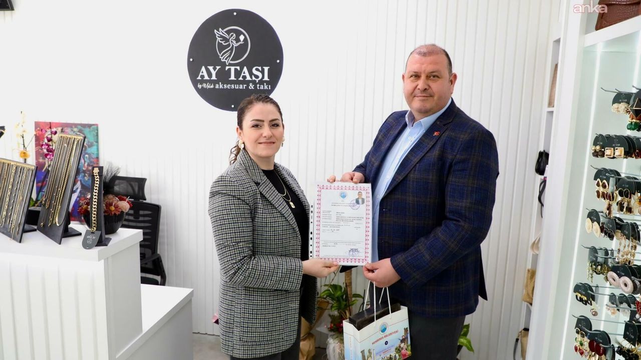 Menderes Belediye Başkanı İlkay Çiçek'in eşi Melek Çiçek'in Menderes'e kazandırdığı Ay Taşı Aksesuar ve Takı işletmesinin ruhsatını Başkan Çiçek kendisi teslim etti. Yapılan sürpriz ziyarette işyeri ruhsatını eşine veren Başkan Çiçek'in sürprizi eşi Melek Çiçek tarafından mutlulukla karşılandı.