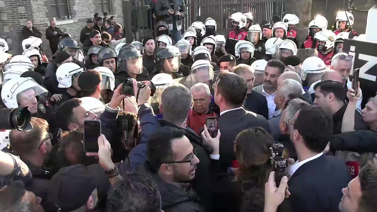 İzmir Büyükşehir Belediye Başkanı Cemil Tugay, Vakıflar Genel Müdürlüğü'ne devrine ilişkin yargı süreci devam eden ancak sabah saatlerinde polis tarafından ablukaya alınan Meslek Fabrikası önünde basın açıklaması gerçekleştirdi.