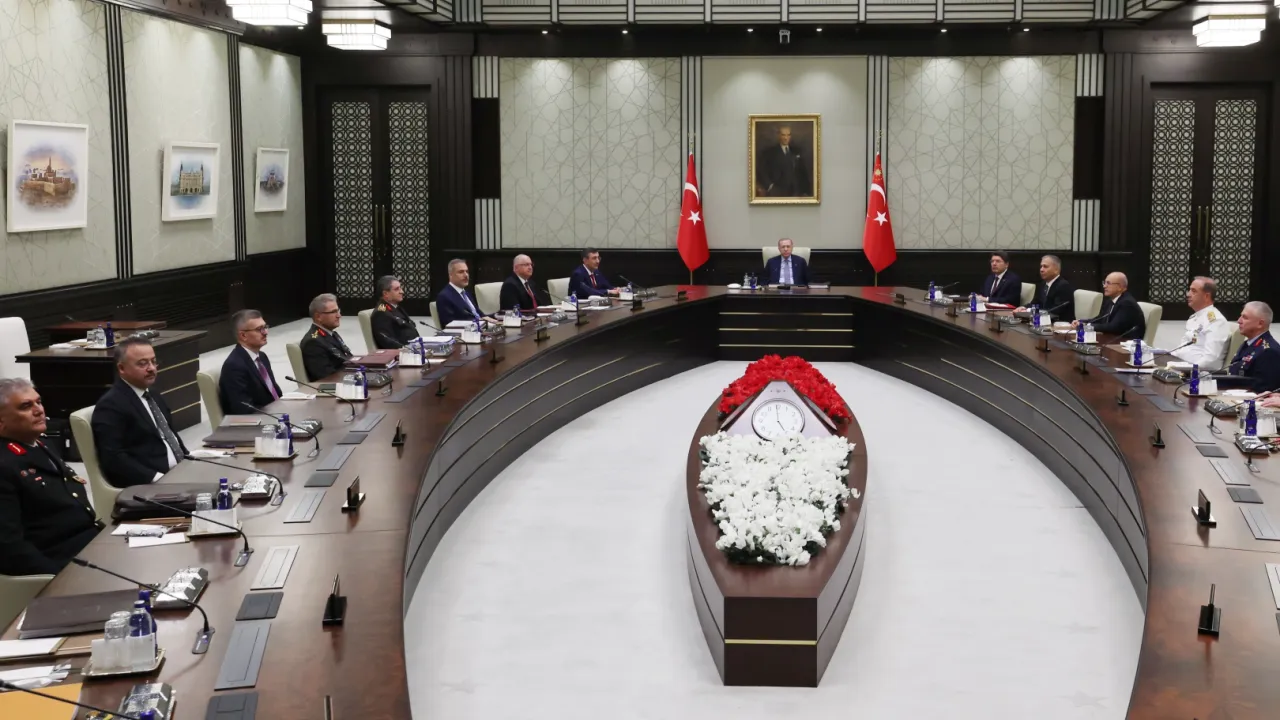 Millî Güvenlik Kurulu, yeni kuvvet komutanlarıyla birlikte Cumhurbaşkanı Recep Tayyip Erdoğan başkanlığında ilk toplantısını gerçekleştirdi. Terörle mücadele, Gazze’deki insani felaket, Kıbrıs’ta iki devletli çözüm, Suriye ve Irak’ın güvenliği, Rusya-Ukrayna Savaşı ve Ermenistan’la normalleşme konularının ele alındığı toplantıda Türkiye, barış ve istikrar için kararlı duruşunu yineledi.ANKARA (İGFA) - Milli Güvenlik Kurulu (MGK), 30 Eylül 2025’te Cumhurbaşkanı Recep Tayyip Erdoğan’ın başkanlığında Cumhurbaşkanlığı Külliyesi’ndeki toplantıda ardından bildiri yayımlandı. MGK bildirisine göre toplantıda, Türkiye’nin güvenliği ve bölgesel meselelere ilişkin kritik konular değerlendirildi.