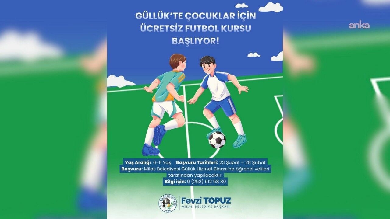 Kontenjanın sınırlı olduğu ve 6-11 yaş arası çocukların katılabileceği futbol kursları ücretsiz gerçekleşecek. Geleceğin yetenekli futbolcu adaylarını misafir edecek kurslara kayıt yaptırmak ve bilgi almak isteyen vatandaşlar, Güllük Hizmet Binası’na başvuru yapıp 0(252) 512 58 80 numaralı telefonu arayabilecek.