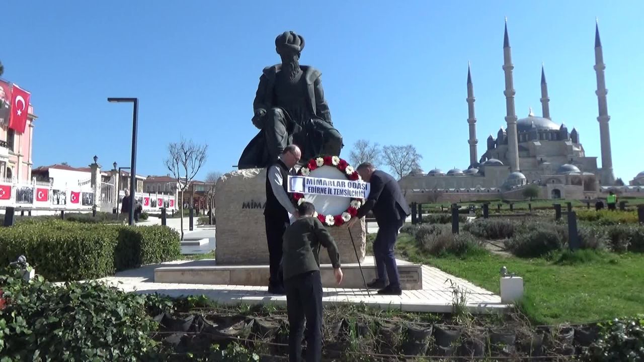 Mimar Sinan, ölümünün 438'nci yılında düzenlenen törenle anıldı. TMMOB Mimarlar Odası Edirne Temsilciliği tarafından Selimiye Meydanı'nda yer alan Mimar Sinan heykeline çelenk bırakıldı.