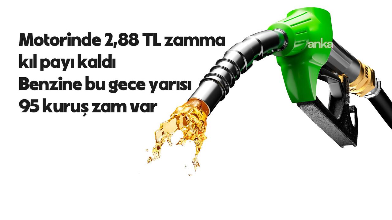 Benzine, bu gece yarısı 3,80 TL zam hesaplandı. Eşel mobil gereğince bunun yüzde 75'i, ÖTV'den karşılanacak. Kalan 95 kuruş, gece yarısı pompa satış fiyatlarına yansıtılacak.