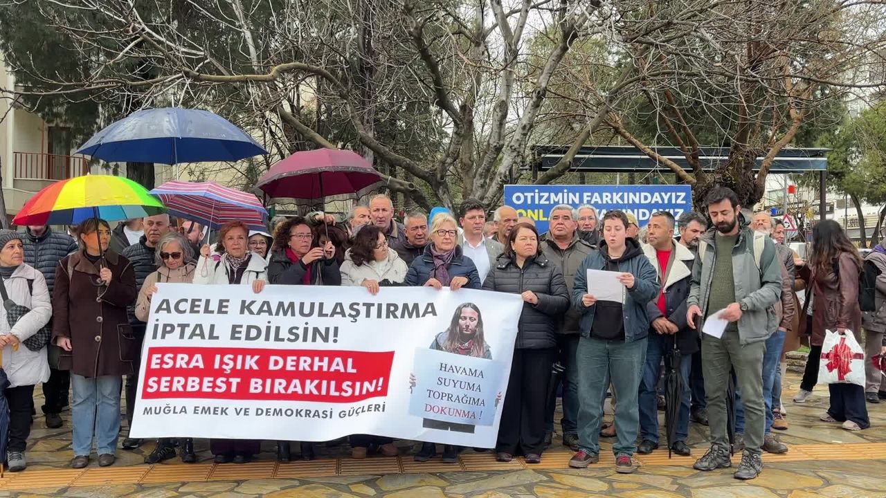 (MUĞLA) Muğla Emek ve Demokrasi Güçleri tarafından İkizköylü Esra Işık'ın tutuklanmasına ilişkin basın açıklaması yapıldı. Açıklamada, tutuklamanın ekoloji mücadelesini sindirmeye yönelik olduğu savunularak Işık'ın serbest bırakılması ve acele kamulaştırma sürecinin durdurulması çağrısı yapıldı.