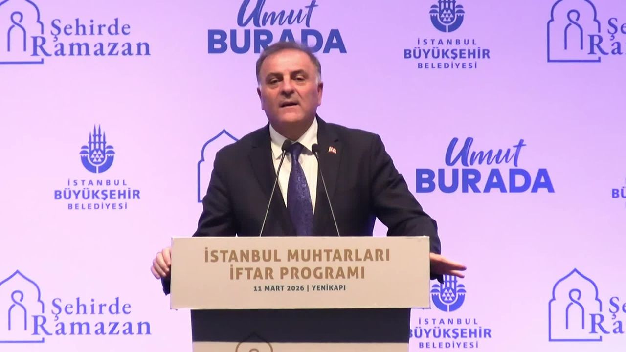 İstanbul Büyükşehir Belediyesi (İBB) Başkanvekili Nuri Aslan'ın iftar programları devam ediyor. Bu akşamki iftar yemeğinde, Yenikapı'da İstanbul'un muhtarları ile buluşan Aslan, konuşmasına Silivri'de tutuklu bulunan CHP'nin cumhurbaşkanı adayı, İBB Başkanı Ekrem İmamoğlu'nun selamlarını ileterek başladı. 'Kıymetli muhtarlarımız, İBB Grup Başkan Vekilimiz, İBB Meclis üyelerimiz, bürokrat arkadaşlarımız ve tabii ki Muhtarlıklar Dairesi Başkanımız Yavuz Saltık'ın kıymetli eşi aramızda Sevgi Hanım ve yakın çalışma arkadaşlarımız; tekrar ifade ediyorum muhtar kardeşlerim, hepiniz hoş geldiniz' diyen Aslan, iftar programında şunları söyledi: