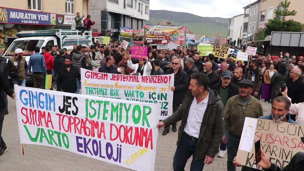 Muş'un Varto ilçesinde sivil toplum örgütlerince, Amerika merkezli IGNIS H2 Enerji Üretim Anonim Şirketi tarafından yapımı planlanan Jeotermal Enerji Santrali'nin (JES) çevreye olumsuz etkileri olacağı gerekçesiyle protesto mitingi düzenlendi.