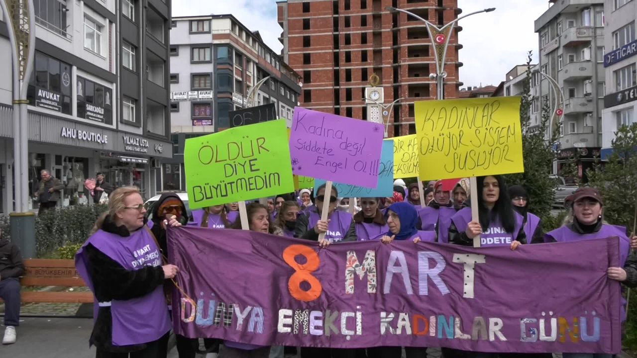 (TRABZON) - Trabzon'un Of ilçesinde kadınlar, ilk kez 8 Mart Dünya Emekçi Kadınlar Günü'nde yürüyüş düzenledi. Kadınlar adına konuşan Nokta Hacıbektaşoğlu, 'Kimimiz çarşafımızla, kimimiz başörtümüzle, kimimiz keşanıyla, peştemalıyla, kimimiz farklı yaşam tarzlarımızla ama hepimiz kadın olma paydasında, omuz omuzayız. Biz farklılıklarımızı bir ayrılık değil, birbirimize tutunma vesilesi yaptık' dedi.
