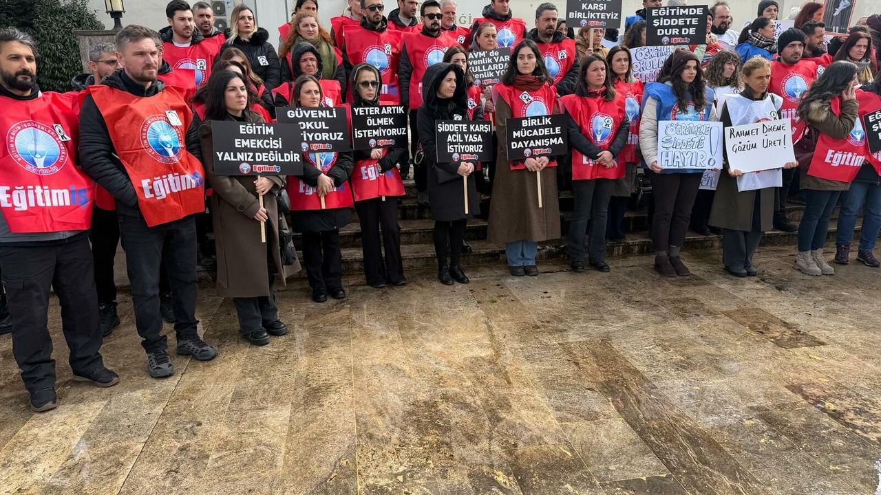İstanbul Çekmeköy'deki öğretmen Fatma Nur Çelik'in hayatını kaybettiği, bir başka öğretmen ile öğrencinin yaralandığı bıçaklı saldırıya ilişkin protestolar sürüyor. Rize Valilik protokol alanında bir araya gelen Eğitim İş üyeleri, okullarda güvenli çalışma koşullarının sağlanması ve şiddete karşı somut önlemler alınması talebiyle açıklama yaptı. Eğitim İş Rize Şube Başkanı Hamza Kutay, Milli Eğitim Bakanlığı'na daha önce de güvenlik önlemlerinin artırılması çağrısı yaptıklarını belirterek şunları söyledi: