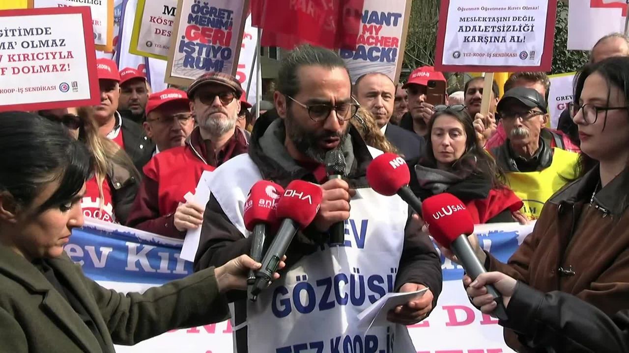 Eğitim-Sen 3 No'lu Şube Başkanı Hüseyin Tursoy ise 'Burada bulunmamızın temel nedeni ikame öğretmen atamasıyla birlikte grev kırıcılığına gidilmesidir. Bu hem yasalarımızca suçtur, hem etik olarak ahlaki olarak suçtur. Buna bir an önce son verilmesini istiyoruz. İkame öğretmenlerin geri çekilmesini istiyoruz.' dedi.