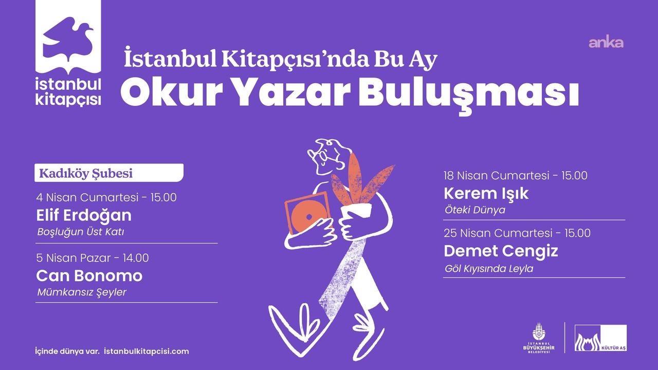 (İSTANBUL) - İstanbul Büyükşehir Belediyesi (İBB) Kültür AŞ'ye bağlı İstanbul Kitapçısı, nisan ayında düzenleyeceği 'Okur Yazar Buluşması' etkinlikleri ile edebiyat meraklılarını yazarlarla bir araya getiriyor. Program kapsamında okurlar; 18 Nisan'da Kerem Işık ve 25 Nisan'da Demet Cengiz ile İstanbul Kitapçısı Kadıköy şubesinde buluşacak.
