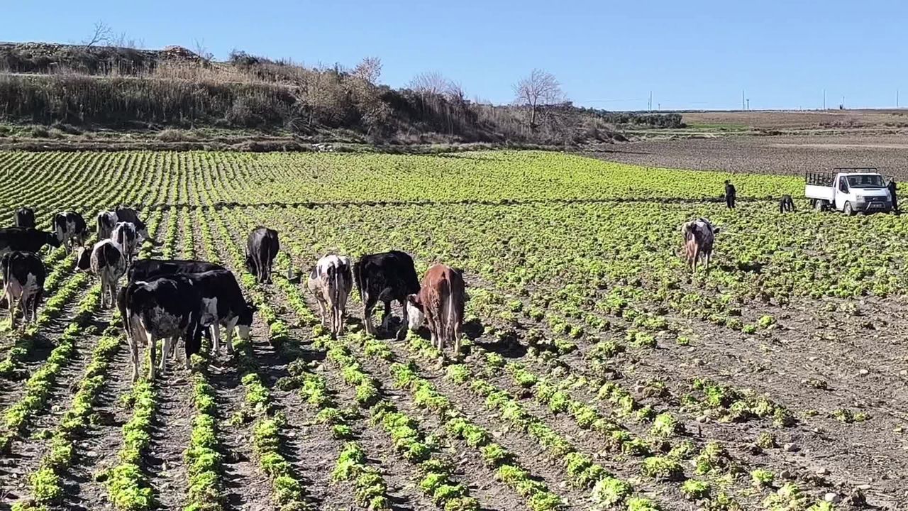 (OSMANİYE) - Osmaniye'de bir çiftçi 80 dönüm tarlasını, ekili marulları satamaması nedeniyle küçükbaş ve büyükbaş hayvanların otlamasına açtı.