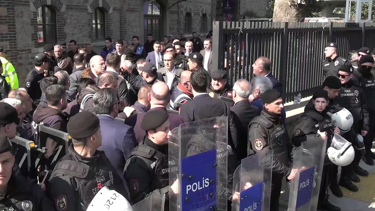 Alana siyasiler de gelirken Meslek Fabrikası önüne gelen CHP İzmir Milletvekillerinin içeriye girmesine izin verilmemesi arbedeye neden oldu. CHP İzmir Milletvekili Ednan Arslan kapı önünde polis tarafından engellendi.