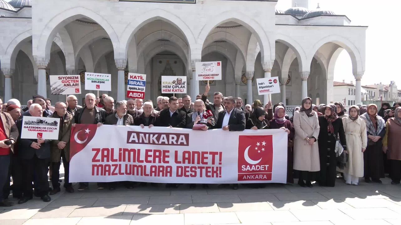 Saadet Partisi Ankara il teşkilatı, cuma namazı çıkışı ABD ve İsrail'in İran, Lübnan ve Gazze'ye yönelik saldırılarını Melike Hatun Camisi önünde protesto etti.