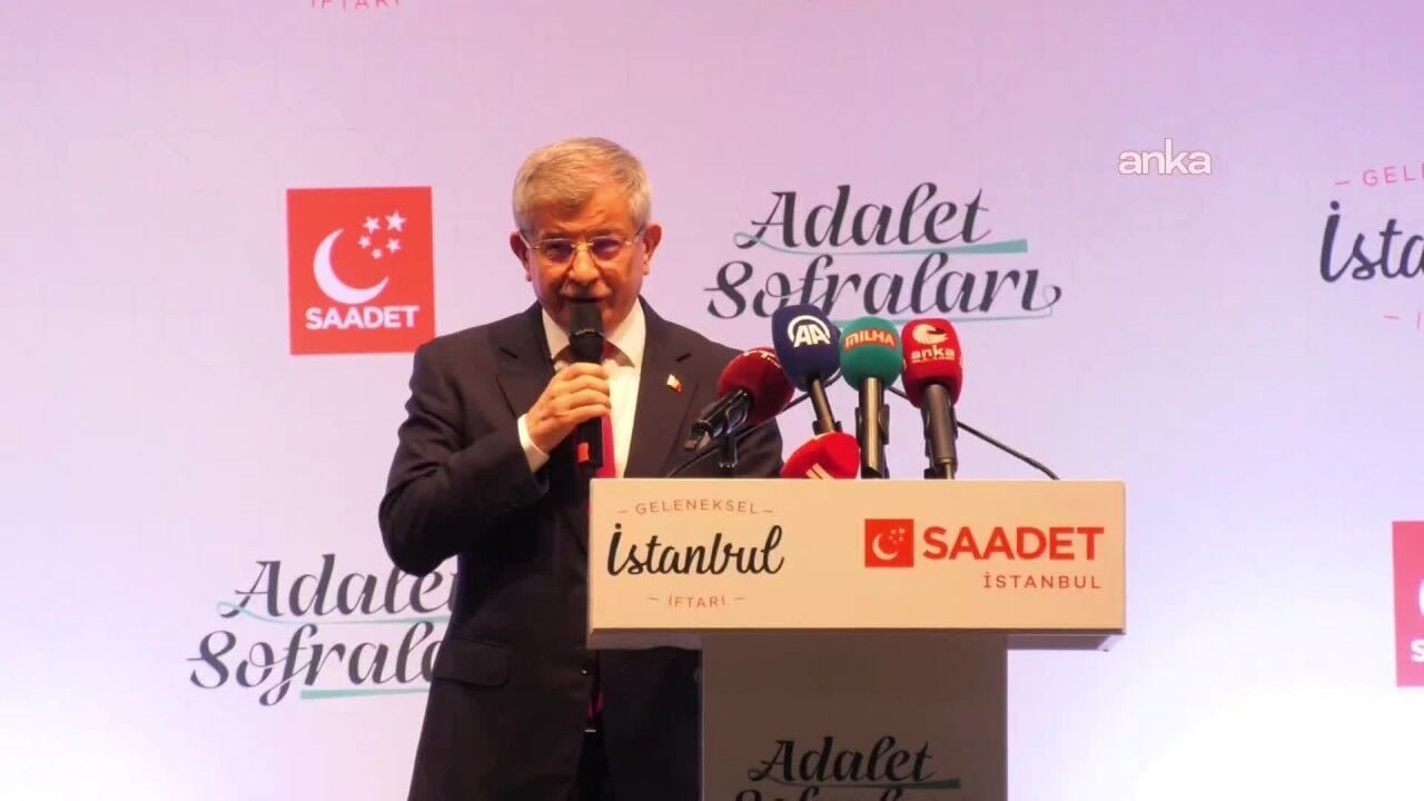 İftarda söz alan Gelecek Partisi Genel Başkanı Ahmet Davutoğlu, "Çoktandır özlediğimiz bir tablo bugün bu masada Türk milletinin önüne sunulmuş durumda. Bu daveti reddetmeyerek bir masa etrafında buluşan bütün genel başkanlara teşekkür etmek istiyorum. Bu tabloya ihtiyaç var arkadaşlar. Bu geleneğin mimarı, önümüzdeki cuma günü vefatının 15'inci senesini idrak edeceğimiz Prof. Dr. Necmettin Erbakan Hocamıza da rahmet ve minnetlerimi ifade etmek istiyorum. Allah mekanını cennet eylesin. Onun irfanı, onun kararlılığı, onun mücadele azmi olmasaydı bu sofralar kurulamazdı" ifadesini kullandı.