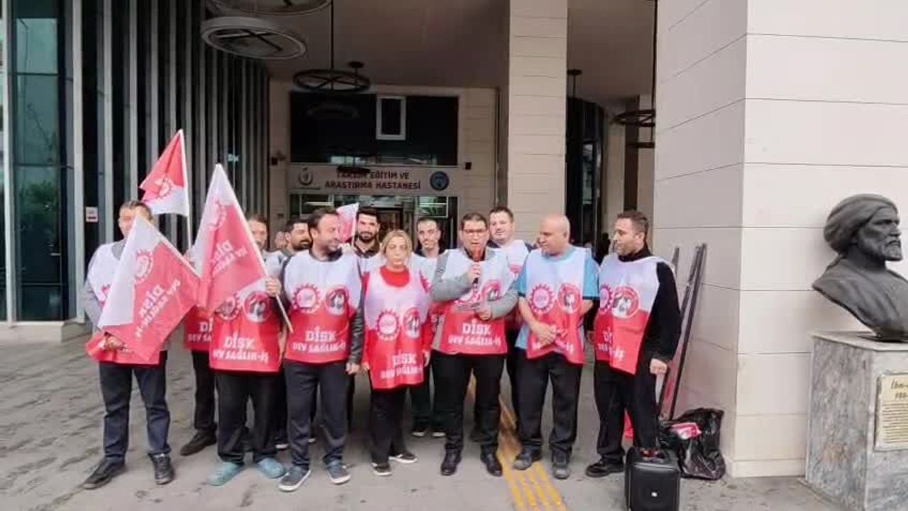 DİSK'e bağlı Sağlık ve Sosyal Hizmet İşçileri Sendikası (DİSK/Dev Sağlık-İş), Taksim Eğitim ve Araştırma Hastanesi önünde basın açıklaması gerçekleştirdi. Açıklamada konuşan, Dev Sağlık-İş İstanbul Şube Başkanı Ali Aksu, 'Merkezi bütçe-döner sermaye ayrımı işçi memur arasındaki gerilimi arttırmakta, hastane yönetimlerini ödemeler konusunda tercihe zorlamakta ve bu tercih de iş barışını bozar nitelik taşımaktadır. Kamu işyerlerindeki sağlık ve sosyal hizmet işçileri olarak emeğimizin karşılığını istiyor, sağlık ve sosyal hizmetinde biz de varız diyoruz! Bizler sağlık işçileri olarak yok sayılmak, görmezden gelinmek istemiyoruz' dedi.