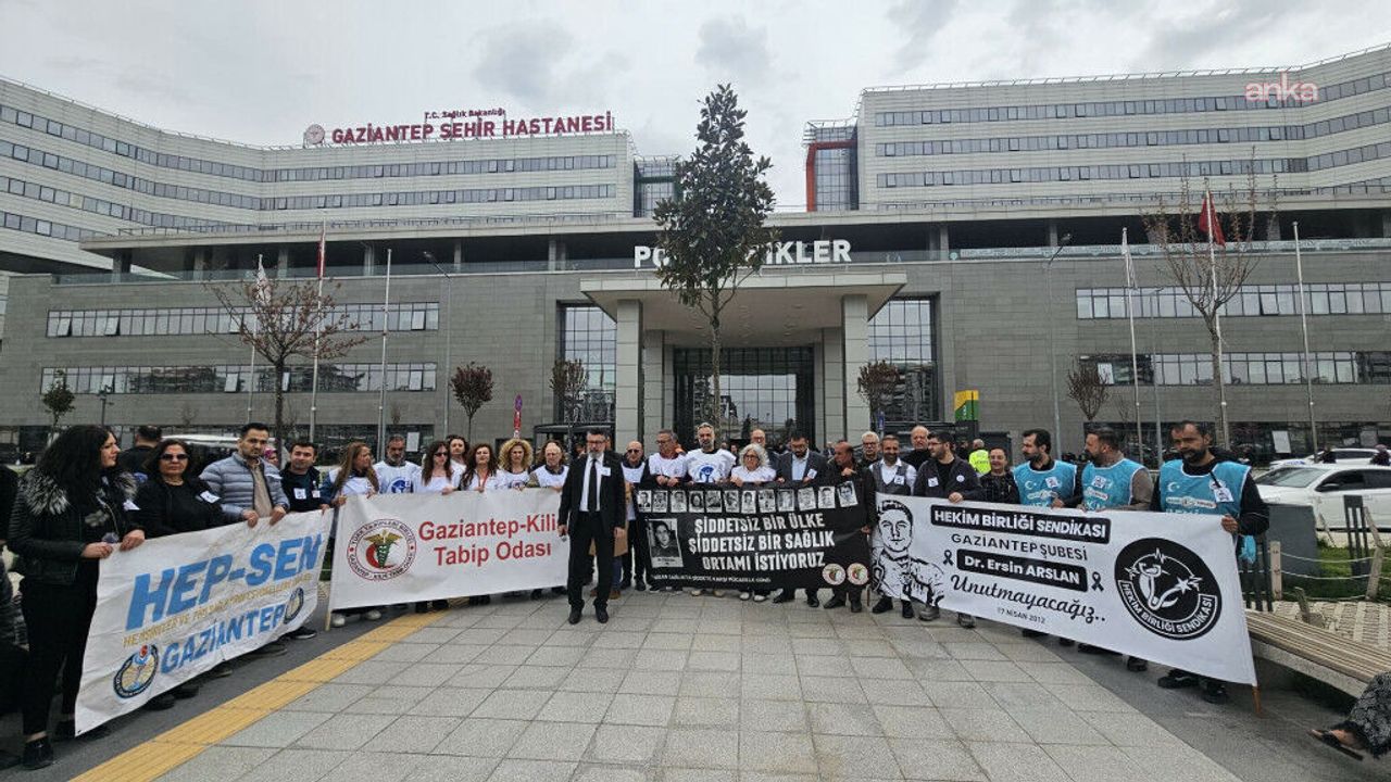 Gaziantep'te görevi başında hayatını kaybeden Dr. Ersin Arslan, ölüm yıl dönümünde düzenlenen etkinlikle anıldı. Gaziantep Sağlıkçılar Meclisi adına basın açıklamasını okuyan Dr. Ebru Demirel, sağlık çalışanlarına yönelik şiddetin her geçen yıl arttığını belirterek, 'Şiddetsiz bir sağlık sistemi, şiddetsiz bir hekimlik ortamı, şiddetsiz bir ülke mümkündür ve zorunludur' dedi.