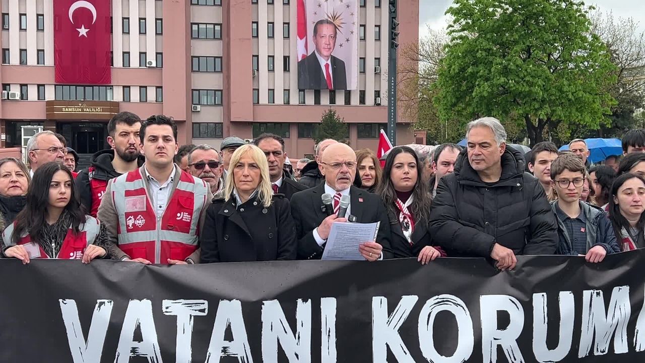 CHP Samsun İl Başkanlığı üyeleri, 23 Nisan Ulusal Egemenlik ve Çocuk Bayramı dolayısıyla Samsun Valiliği önünde basın açıklaması yaptı.