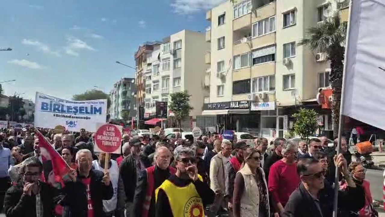 Yürüyüşte, Dicle Duru Elmacı ve Erkan Kaya tarafından okunan ortak açıklamada, 'Ülkemiz ve bölgemiz tarihsel bir kırılma sürecinden geçiyor. Dışarıda savaş politikaları, içeride ise derinleşen yoksulluk, hayat pahalılığı ve baskı rejimi halkın yaşamını her geçen gün daha da zorlaştırıyor. Emekliler, emekçiler, çiftçiler, işsizler ve gençler geçim derdiyle boğuşurken; bir avuç azınlık, ayrıcalıklı kesim servetini büyütmeye devam ediyor. Bu tablo bir tesadüf değil; AKP'nin yarattığı saray rejiminin, bu düzenin sonucudur. Bugün yaşadığımız yalnızca ekonomik bir kriz değil, bu rejimin yöneteme krizidir. Tek adam rejiminde; demokrasi yok, laiklik yok, bağımsızlık yok, halk için bütçe yok. Peki ne var? Baskı var, tutuklama var, gericilik var, sömürü var, yasaklamalar var. Fakat bir şeyi unutuyorlar. Tüm bunların olduğu yerde karşılarında halk da var. Halk burada, Narlıdere Meydanı'nda. Bir kez daha birleşerek yan yanayız. Buradayız, hep beraberiz' denildi.