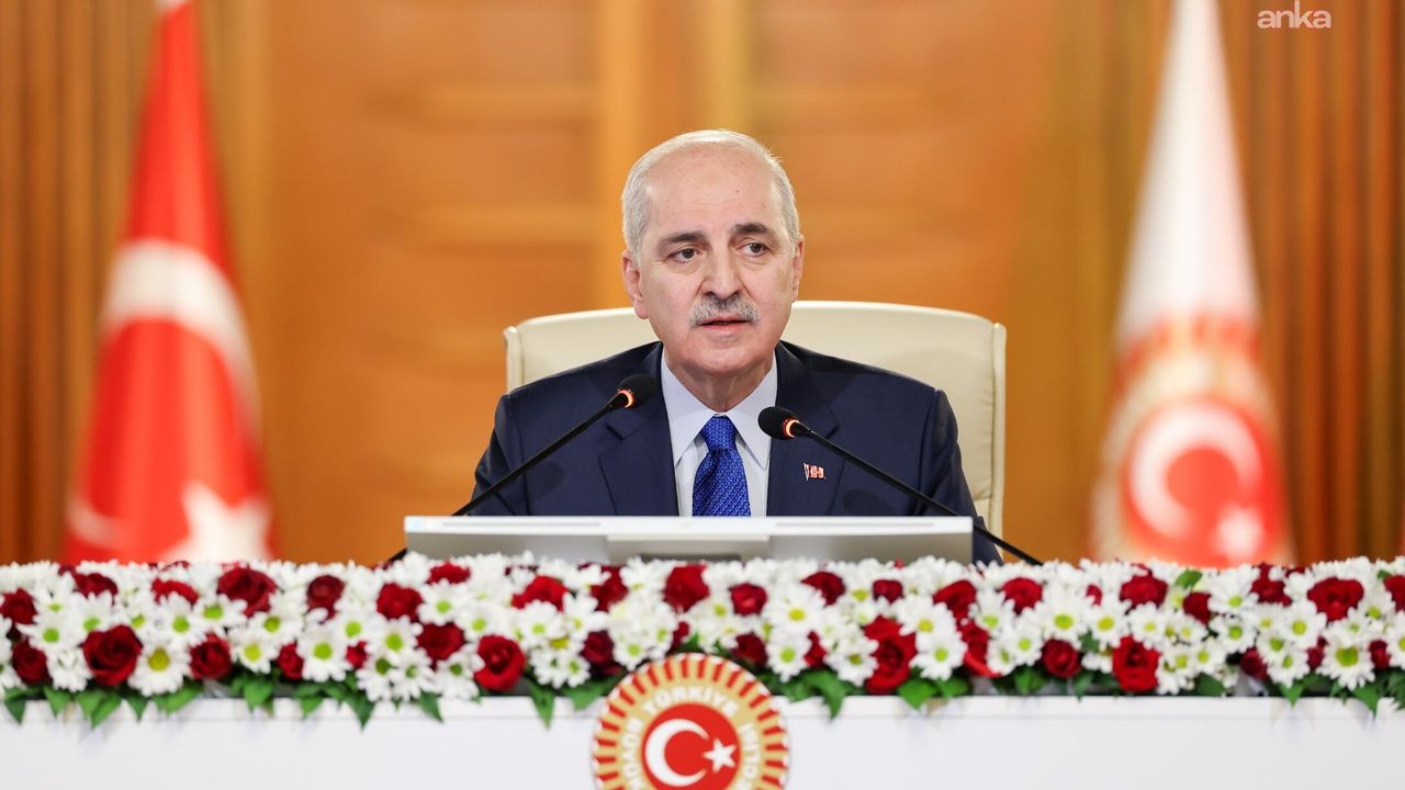 TBMM Başkanı Numan Kurtulmuş, TBMM Tören Salonu'nda düzenlenen basın toplantısında, İstanbul'da gelecek hafta gerçekleştirilecek Parlamentolar Arası Birlik (PAB) 152. Genel Kurulu'na ilişkin açıklamalarda bulunduktan sonra gazetecilerin gündeme ilişkin sorularını yanıtladı.