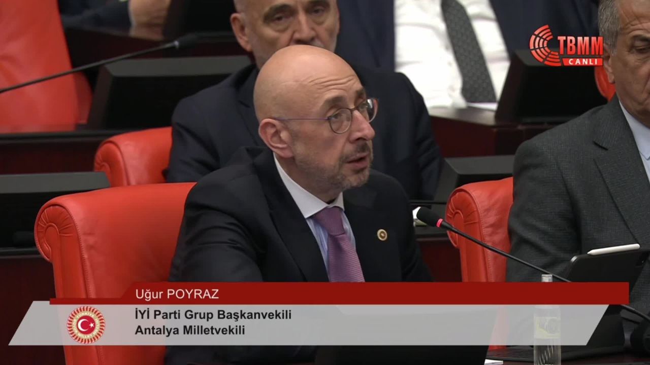 (TBMM) - İYİ Parti Grup Başkanvekili Uğur Poyraz, TBMM Genel Kurulu'nda yaptığı konuşmada, sağlık sistemindeki bürokratik engelleri ve Sosyal Güvenlik Kurumu'nun (SGK) ödeme politikalarına tepki gösterdi. 90 yaşındaki babasının yaşadığı sağlık sorununu ve tedavi sürecini anlatan Poyraz, modern tıbbi imkanlar varken hastaların ağır ameliyatlara zorlanmasına tepki göstererek, 'Benim babam hayatta ama bunu yaptıramayan hangi evladın babası hayatını kaybettiyse vebali vallahi, billahi, tallahi bu memleketi masa başından yöneten, bu empatiyi, bu duyarlılığı kuramayan bürokratlarınızın ve onların sıralı amirlerinindir' dedi.