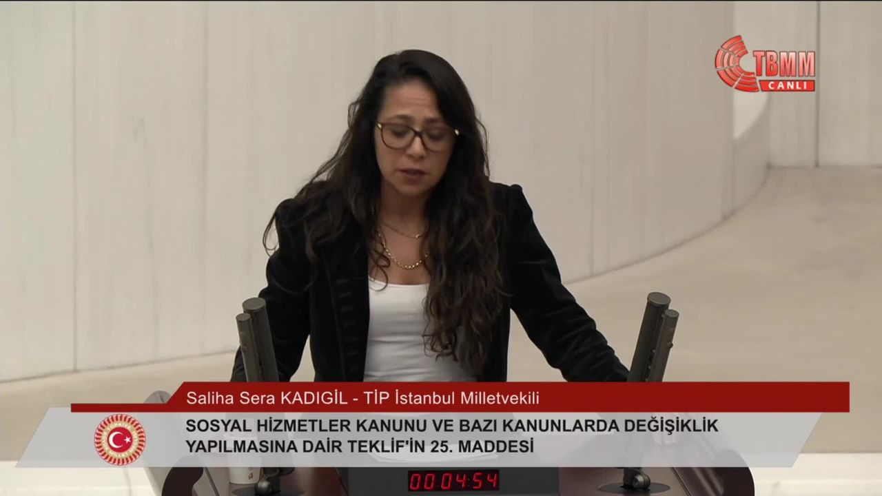 Türkiye İşçi Partisi (TİP) Sözcüsü Sera Kadıgil, Meclis Genel Kurulu'nda yaptığı konuşmada, son dönem sayısı giderek artan ve çocukların suça sürüklendiği ya da yaşamını yitirdiği olayların münferit olmadığını belirtti; AK Parti sıralarına dönerek 'Hem kurban hem katil haline gelen bunca çocuğun her birinden tek tek ve bizzat iktidar olarak sorumlusunuz' ifadelerini kullandı.