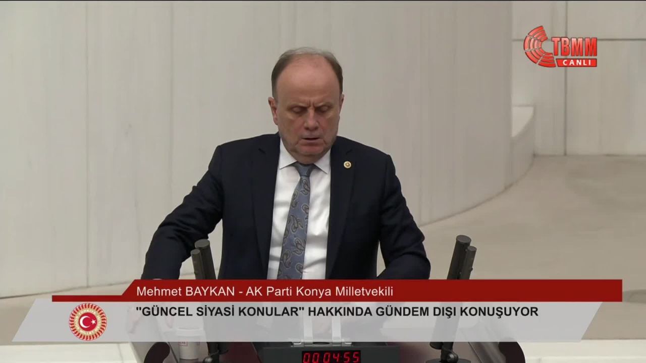Gündem dışı söz alan AK Parti Konya Milletvekili Mehmet Baykan, CHP Genel Başkanı Özgür Özel'in Adalet Bakanı Akın Gürlek hakkında ileri sürdüğü iddiaların 'sadece siyasi rekabet sınırlarını aşmakla kalmadığını, aynı zamanda devletin kurumlarına güveni zedeleyecek bir boyuta ulaştığını' söyledi.