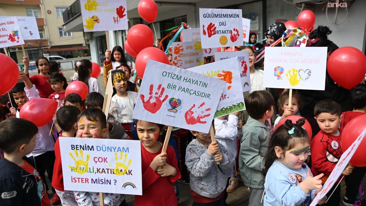 Etkinlikte çocuklar, 'Beni olduğum gibi kabul et, bu bana yeter', 'Otizm, hayatın bir parçasıdır', 'Benim dünyam çok renkli, katılmak ister misin' ve 'Renklerimiz farklı, kalplerimiz aynı' yazılı pankart ve dövizlerle farkındalık yürüyüşü yaptı.