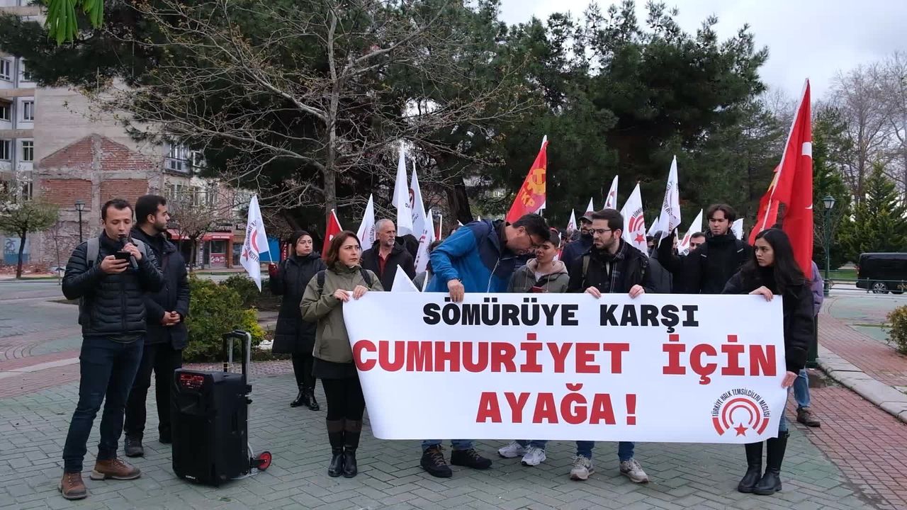 (ESKİŞEHİR) - 23 Nisan Ulusal Egemenlik ve Çocuk Bayramı nedeniyle Türkiye Halk Temsilcileri Meclisi Eskişehir'de yürüyüş düzenlendi. THTM adına basın açıklaması yapan Aslı Demir, 'Cumhuriyet düşmanlarının cirit attığı mevcut TBMM'yi suçlarını gizlemek için kılıf haline getiren holdinglerin ve tarikatların düzeniyle hesaplaşılacak, paranın egemenliği son bulacak ve emekçilerin cumhuriyeti onların elleriyle kurulacaktır. Çocuklarımıza sömürünün son bulduğu, aydınlık ve refah içinde bir Türkiye bırakacağız. Cumhuriyet düşmanları geldikleri gibi gidecekler' dedi.