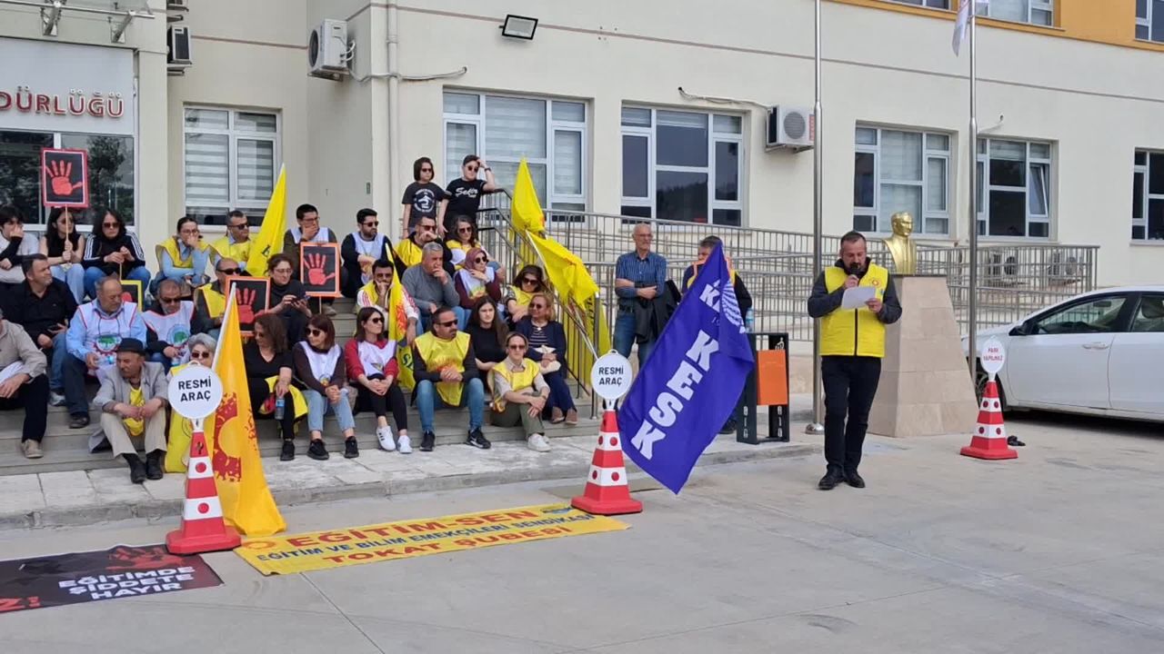 Grup adına basın açıklamasını yapan Eğitim Sen Tokat Şube Başkanı Ercan Özel, okulların güvenli alanlar olmaktan çıkıp şiddet mekanlarına dönüştüğünü belirtti. Siverek ve Kahramanmaraş'taki saldırıları hatırlatan Özel, 'Bir eğitim emekçisi ve çok sayıda öğrencimizi kaybettik. Eğer gerekli tedbirler alınsaydı bu saldırılar engellenebilirdi. Yaşananlar münferit değil, politiktir. Son bir yılda can kaybıyla sonuçlanan en az beş vaka yaşandı. Bu durum sistemin bir sonucudur' dedi.
