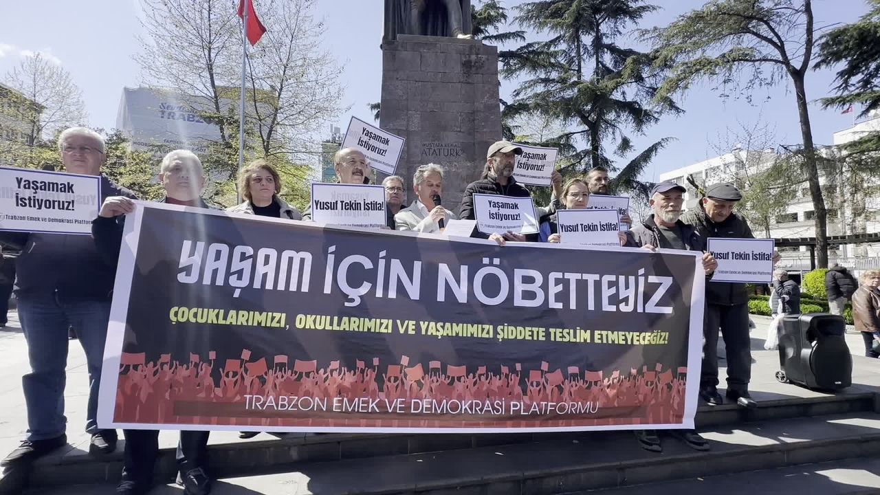 Trabzon Emek ve Demokrasi Platformu, Kahramanmaraş ve Şanlıurfa'da 2 ayrı okulda meydana gelen silahlı saldırılara ilişkin Meydan Parkı'nda bir basın açıklaması yaptı. 'Yaşam için nöbetteyiz' başlığıyla yapılan basın açıklamasında konuşan Metin Serdar, hayatını kaybeden eğitim emekçileri ve öğrencilerin unutulmayacağı belirterek şu ifadeleri kullandı: