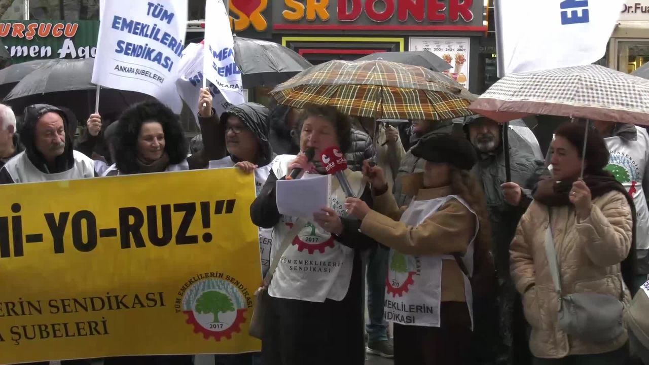 (ANKARA) - Tüm Emeklilerin Sendikası, Ankara Sakarya Caddesi'nde 'Geçinemiyoruz' eylemi yaptı. 12 Nisan'da 8 bölgede miting düzenleneceği belirtilen açıklamada, 'Buradan soruyoruz yönetenlere: Bir ömür boyu çalışmış insan neden ay sonunu getiremiyor? Neden pazardan boş fileyle dönüyor? Emekli yılların emeğini alınteri ve sabrının karşılığını istiyor. Bunun için susmayacaktır. 12 Nisan'da 8 bölgede her ilde, her ilçede bu isyanına devam edecektir. Biz susarsak sefalet büyür. Biz konuşursak meydan büyür. Biz birleşirsek değişim başlar. Emekliye insanca yaşam, sefalet zulmüne son' denildi.
