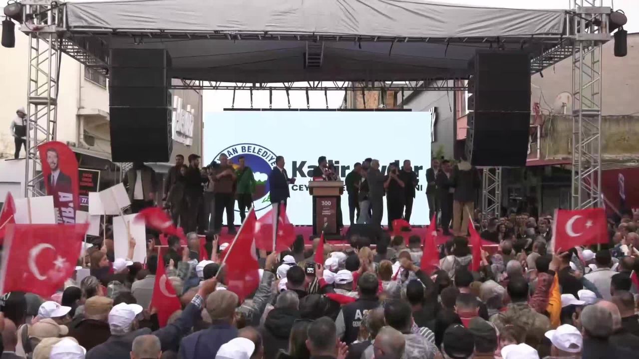 'Buradan Silivri'ye sesleniyorum: Kadir kardeşim, Oya kardeşim; iki genel başkan yardımcımız burada. Biri Adana milletvekili, onunla birlikte beş Adana milletvekili burada. İl başkanımız burada, ilçe başkanlarımız burada, kadın kolları başkanlarımız burada. On belediye başkanımız burada. Çok sevdiğin Ceyhanlılar, Adanalılar burada; hepsi seni desteklemeye geldi. Silivri'ye destek mesajı vermeye geldi. Buradan Silivri'ye bir selam ve destek gönderiyorum. Kadir Başkan haksız bir biçimde üç aydır burada ve çok güzel bir savunma yaptı. Dedi ki: 'Benim sana bir buçuk milyon borcum var. Sen niye bana 20 milyon verirsin?' Aslında o iş orada bitti ama biliyorsunuz, sizin desteğinizle çok yakın zamanda tekrar özgürlüğüne kavuşacak. Herkesin özgürlüğüne kavuşmasını diliyoruz. Buradan desteğimizi iletiyoruz. Oya Başkan da Kadir Başkan da özgürlüklerine kavuşurlar, kaldığımız yerden size hizmet etmeye devam ederiz. Benim kalbim, her şeyimiz sizinle.'