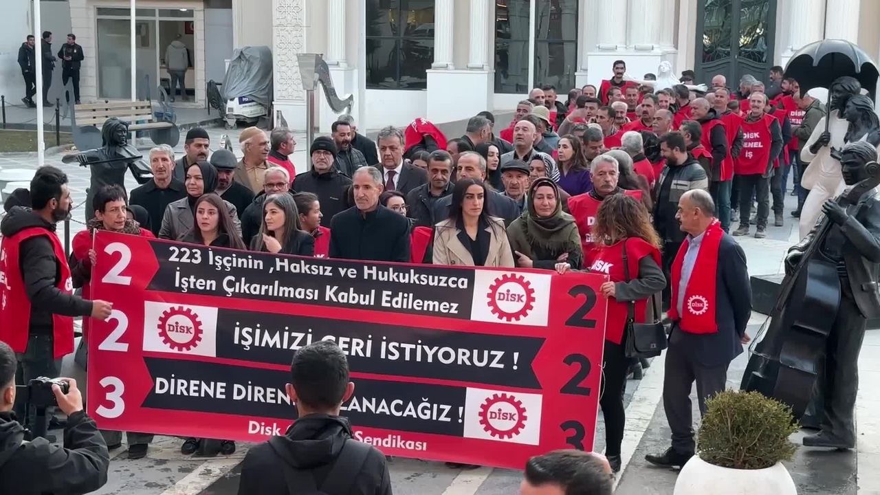 (VAN) - Van Büyükşehir Belediyesi'nde kayyum yönetimi tarafından işten çıkarılan 223 işçinin 'İşimizi geri alacağız' sloganıyla başlattığı eylem 257'nci gününde de sürdü. DİSK Genel-İş Van Şubesi Eş Başkanı Ömer Tekin, 'Şehrin gaspçılarına sesleniyoruz; gasbettiğiniz makamlardan gidin, işlerini elinden aldığınız emekçileri tezgâhlarının başına iade edin' dedi.