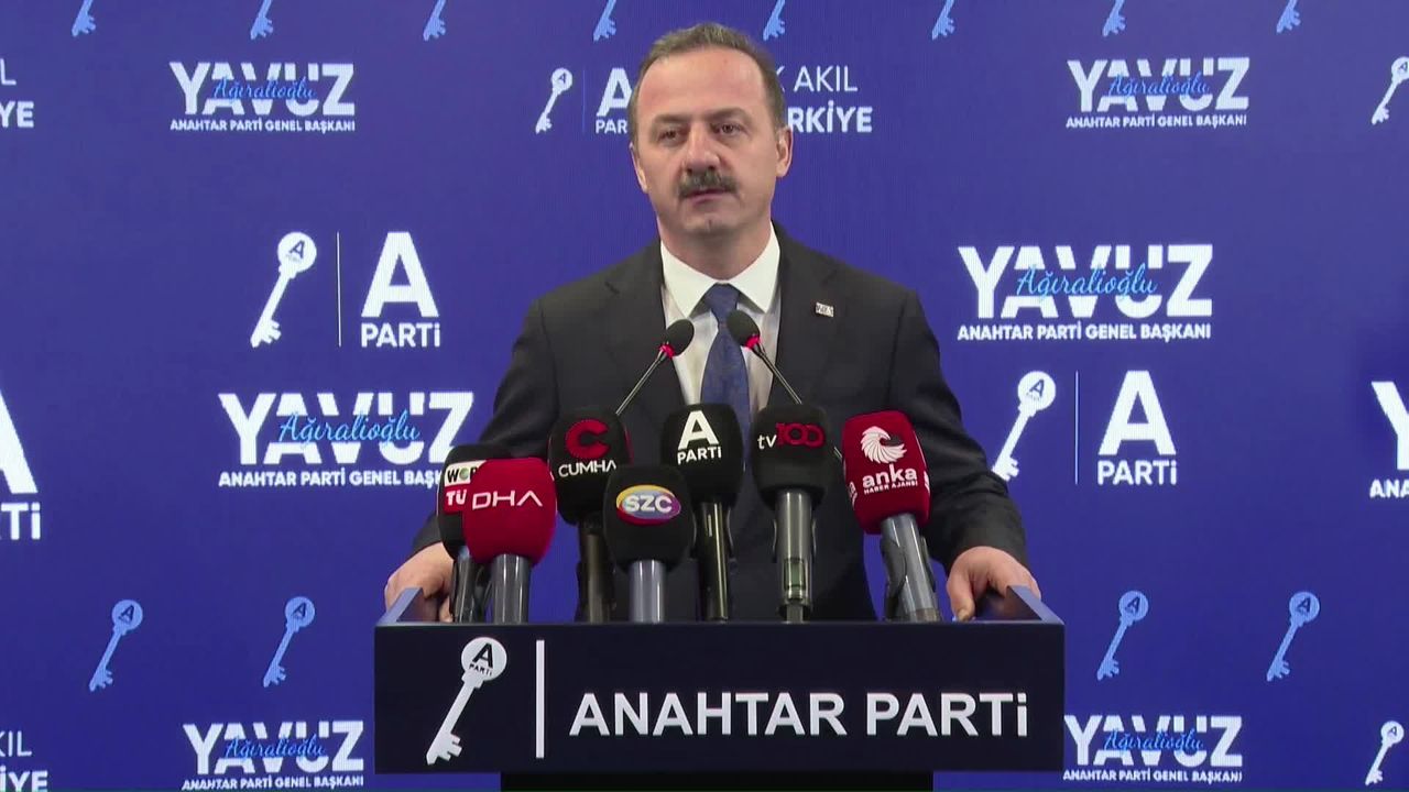 Anahtar Parti Genel Başkanı Yavuz Ağıralioğlu, partisinin genel merkezinde basın toplantısı düzenledi. Terörsüz Türkiye ve laiklik tartışmasıyla ilgili değerlendirmelerde bulunan Ağıralioğlu, basın toplantısının ardından aralarında eski CHP Kadın Kolları Genel Başkan Yardımcısı Merve Kır Müftüoğlu'nun da olduğu partiye yeni katılan üyelere rozetlerini taktı.