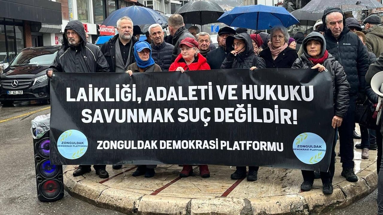 (ZONGULDAK) - Zonguldak Demokrasi Platformu tarafından, aralarında gazeteci, yazar, sanatçı ve akademisyenlerin de bulunduğu 168 kişinin kamuoyuyla paylaştığı 'Laikliği Birlikte Savunuyoruz' başlıklı bildiriye destek amacıyla basın açıklaması yapıldı. Platform Sözcüsü Erdoğan Kaymakçı, 'Bu ilkenin savunulmasının suç gibi gösterilmesi, yurttaşların ifade özgürlüğüne, örgütlenme hakkına ve halkın yönetime katılımına yönelik ciddi bir tehdittir' dedi.